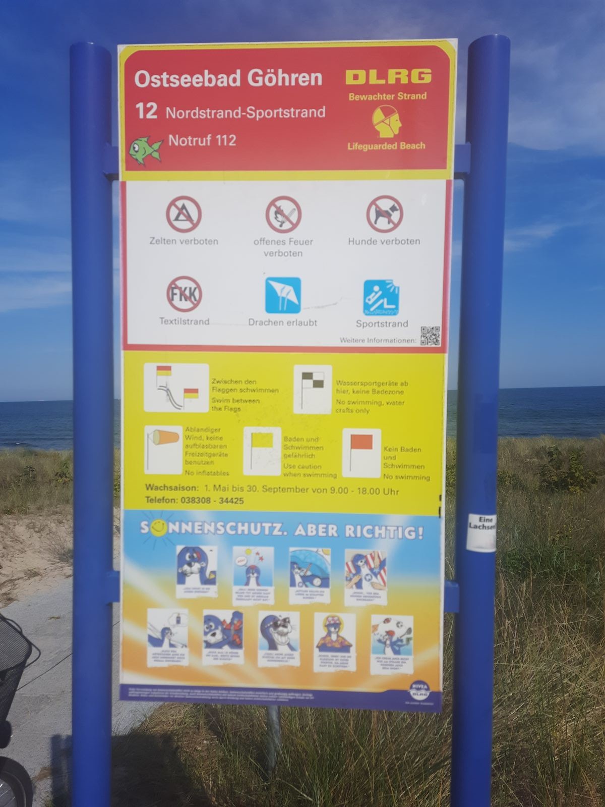 In Göhren hatte ich meinen Drachen leider nicht dabei, es sah aber auch aus, also könnte man, mit etwas laufen, hier ein paar Spots finden. Und- ein (für uns!) sehr sympatisches Strandschild- Drachen erlaubt, Hunde verboten (siehe Anhang):)