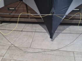 Das Mittelkreuz muss etwas weiter nach oben, schau dir mal die Klettabspannung unten an, kann man den Kiel noch mehr spannen, dann kommt das Kreuz auch höher.