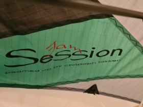 Im Gespräch über den kaum vorhandenen Wind im Binnenland wurde dann erwähnt, dass noch aus Teamflugzeiten des Ladens ein unbenutzter Ersatzdrachen aufgetaucht ist. Gesehen und gekauft.