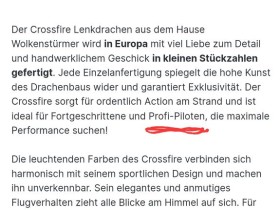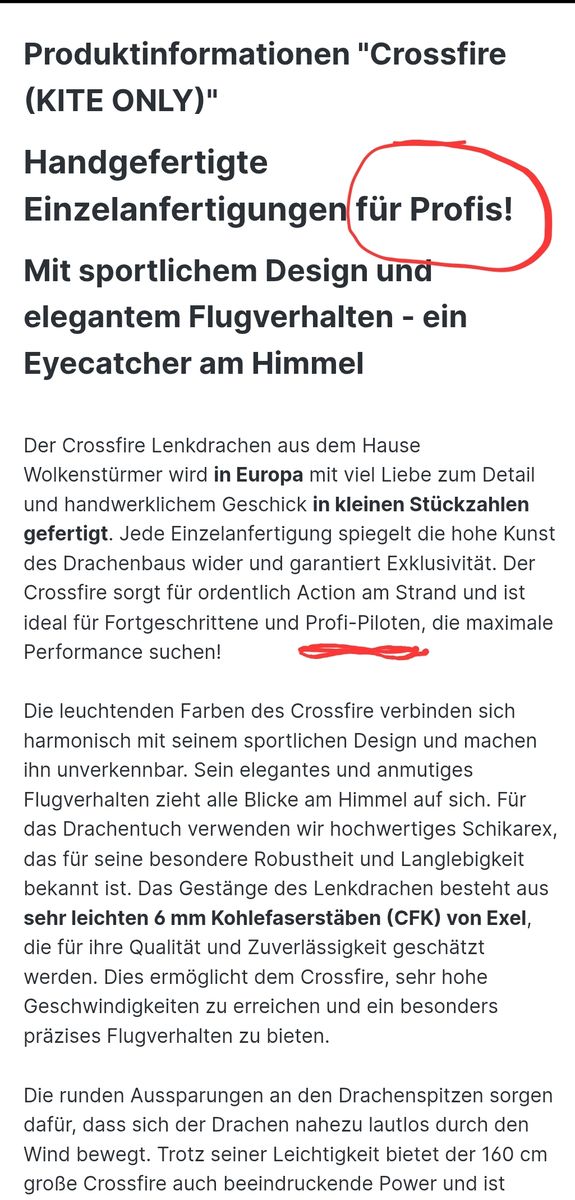 .... wie schon gesagt, ich musste mal Testen. Ist mein Erster von denen. Profidrachen steht dort so im Text. Nach dem was ich gelesen habe, glaube ich auch nicht dran, deshalb war Profi in Klammern.