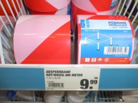 ich bin ja erstmal versorgt, mit leichtem, einseitig schräg bedruckten / St 10 Rollen a 50 m Warnband für 1,49€ von m..... Discounter :P