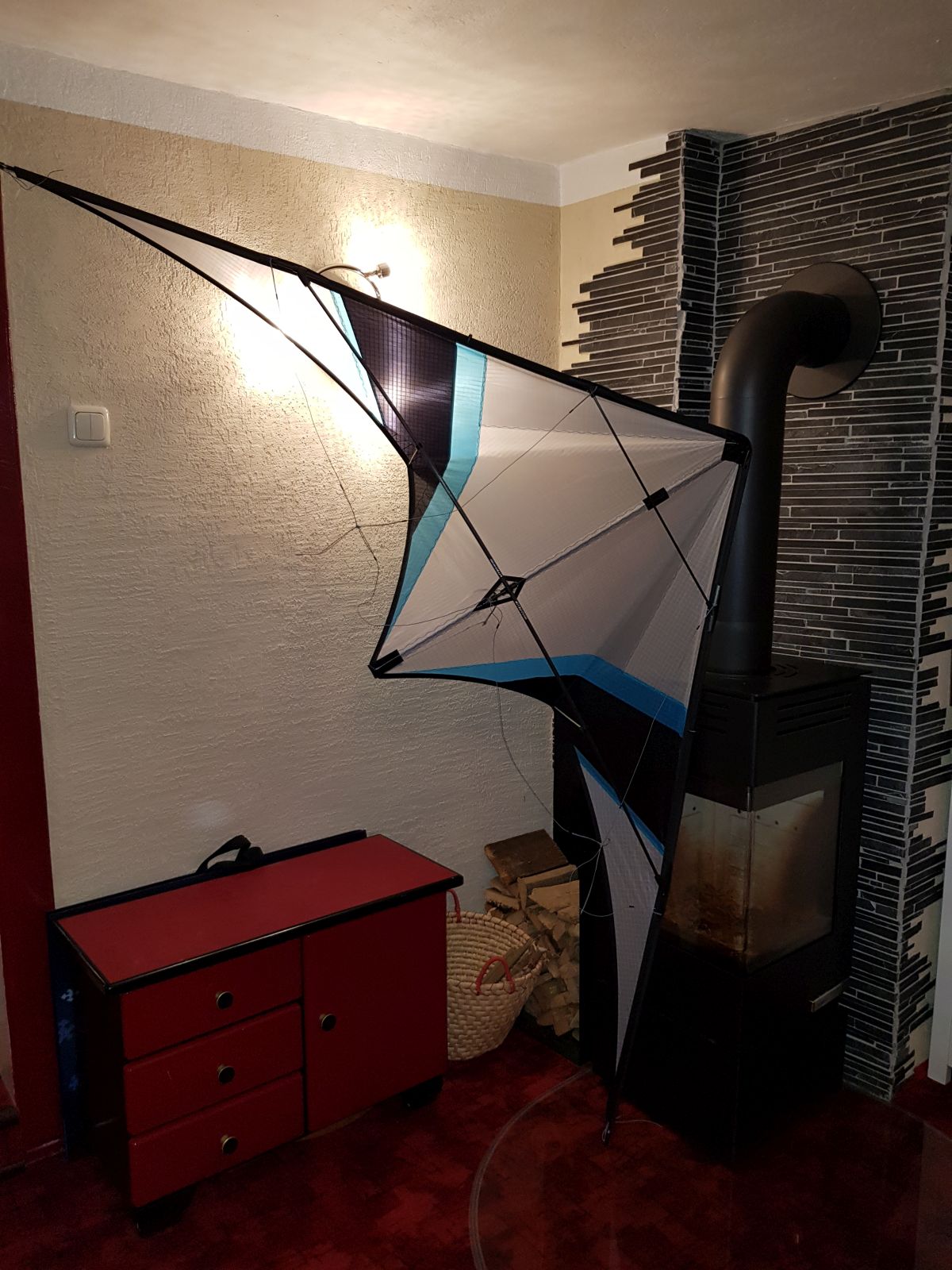 Der Kite wurde nach Kundenwunsch für einen Kunden in Singapur gefertigt, aber der Gute meldet sich seit Monaten nicht mehr. Daher geht die Kiste jetzt hier weg. Nahere Informationen zu den Kite und seinen Eigenschaften sind HIER zu finden.