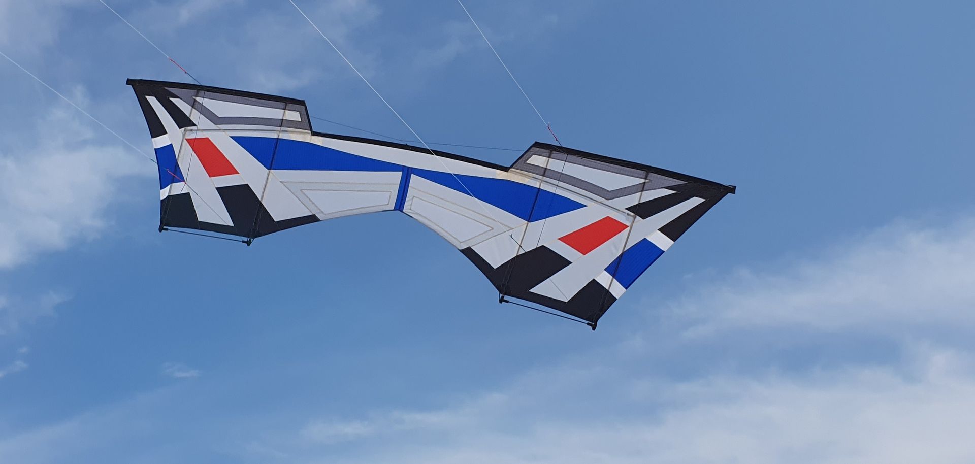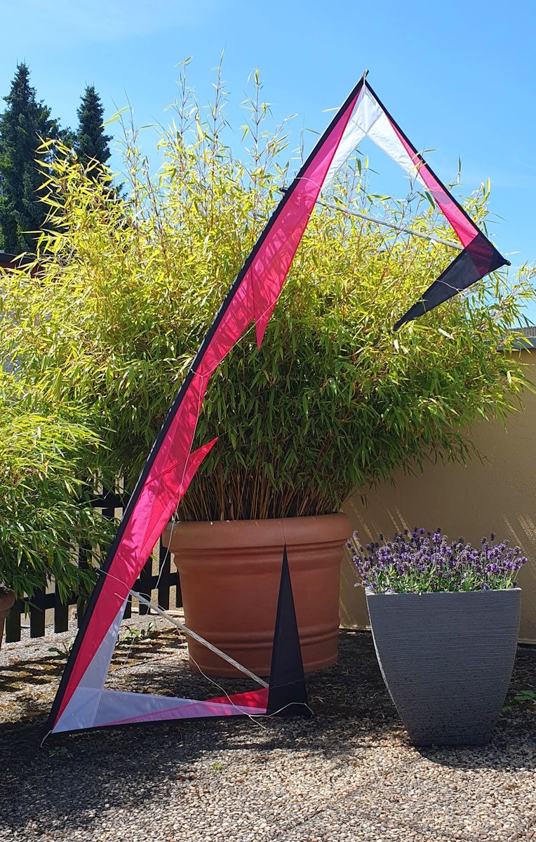 Aufgebaut macht er von den Maßen einen sehr guten Eindruck - die senkrechten Mylarverstärkungen sind straff und die diagonalen