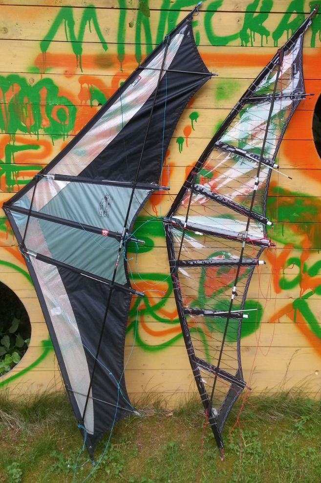 Razorback 180 von Level One und Tavor 170 von Popeyekites.Der Tavor ist eine flotte Rennsemmel der Razorback eine echte Wildsau.
