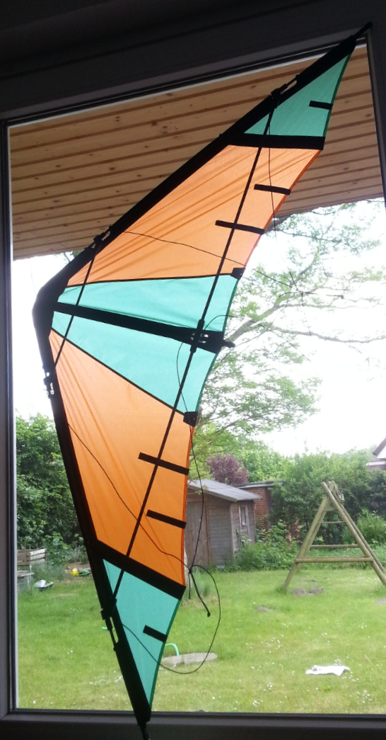 Gebaut nach einem Handskizzenbauplan, den ich in den Tiefen einer Festplatte gefunden hab. Standoffposition, Profilnaht, Panele und Segellatten habe ich selber festgelegt.