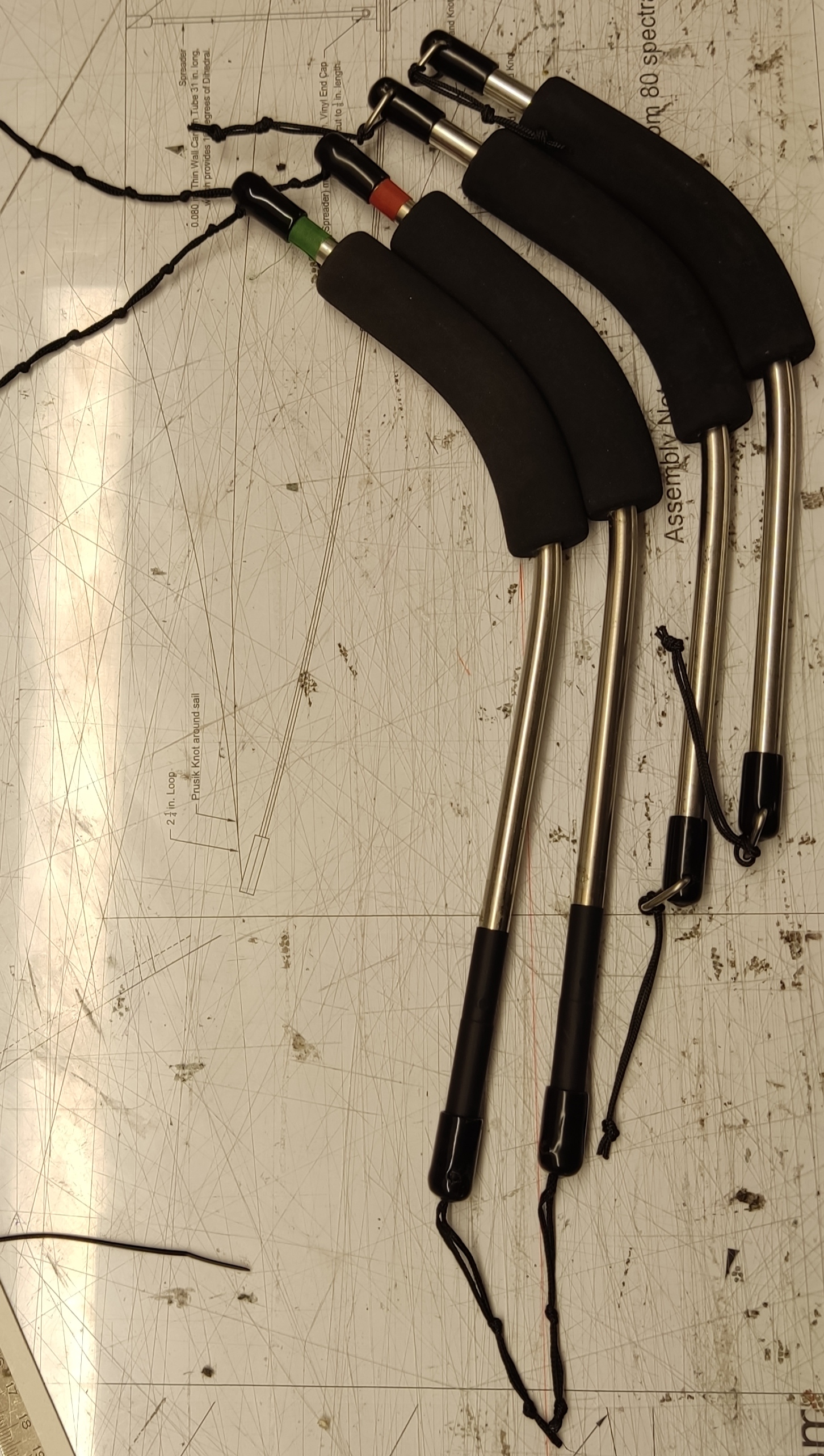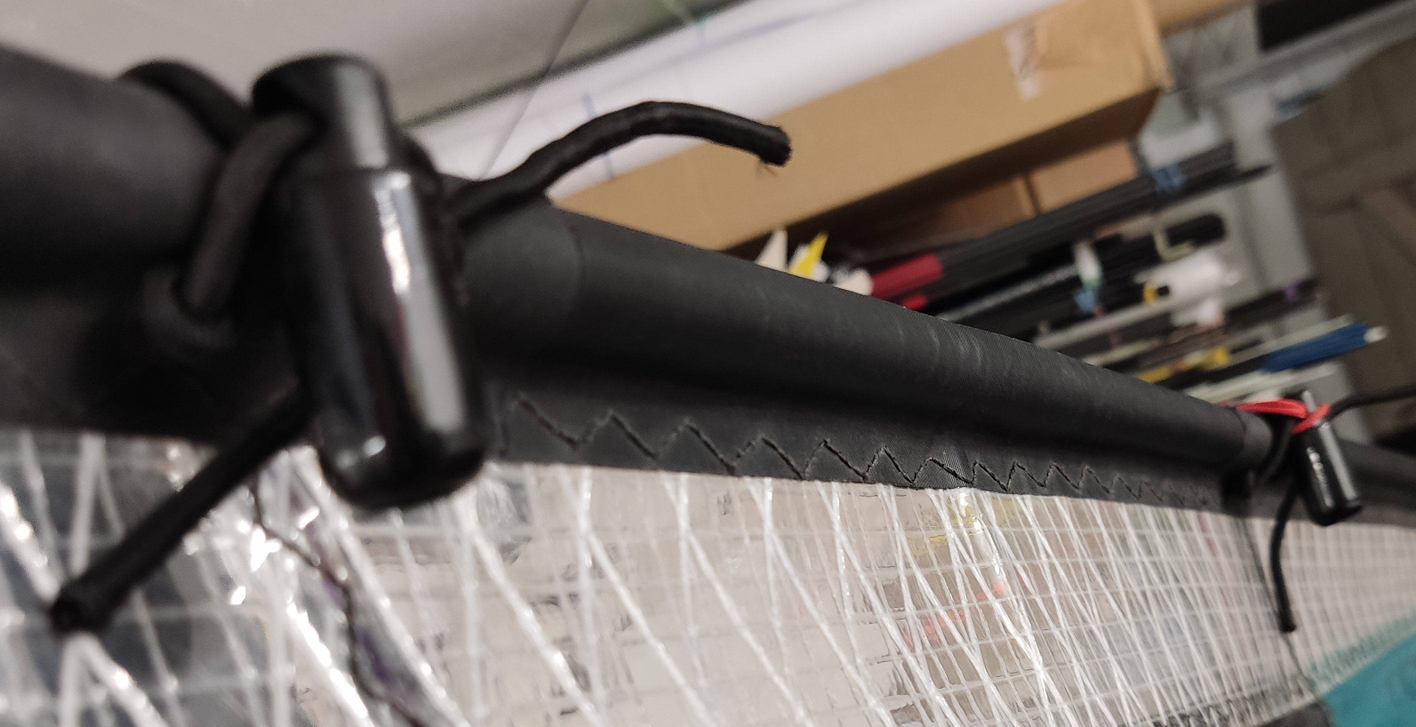 Mir ist ein Shockwave zugeflogen. Die LK ist schön straff gespannt. Die Vertikalen hatten wenig Spannung und die oberen Kappen zeigten nach vorne, obwohl die Stäbe nach hinten kommen. Die hatte ein reverses rundes Profil unter der LK zur Folge. Habe nun alles gespannt und die Knoten verschoben, so dass die Kappen oben nach hinten zeigen.