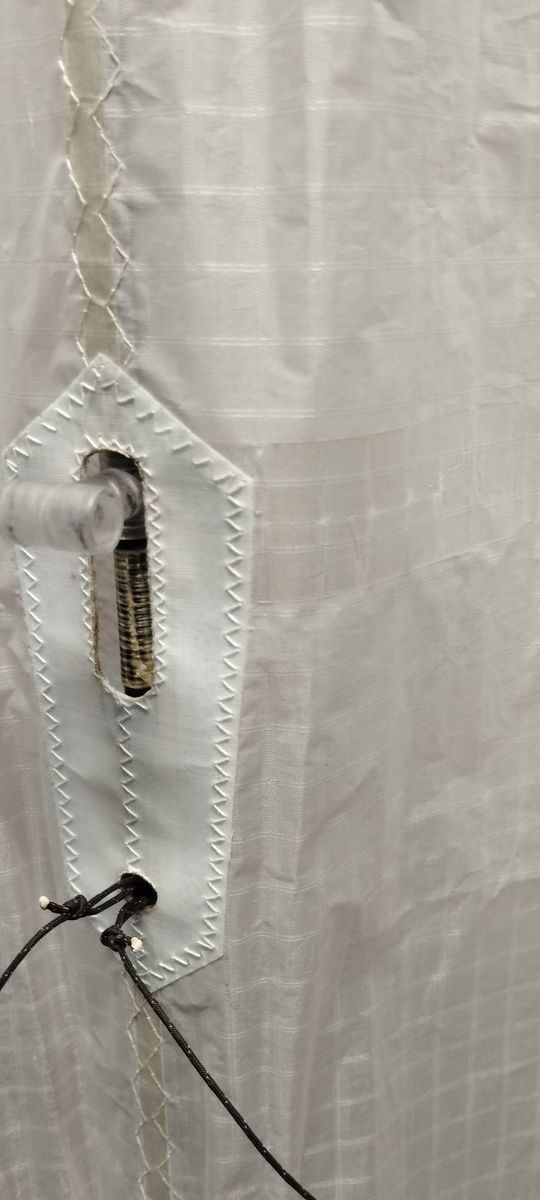 Gebaut schon vor Jahren, aber jetzt endlich einen Segelriss repariert. Hoffe die Reparatur Folie hält beidseitig geklebt ohne Naht.