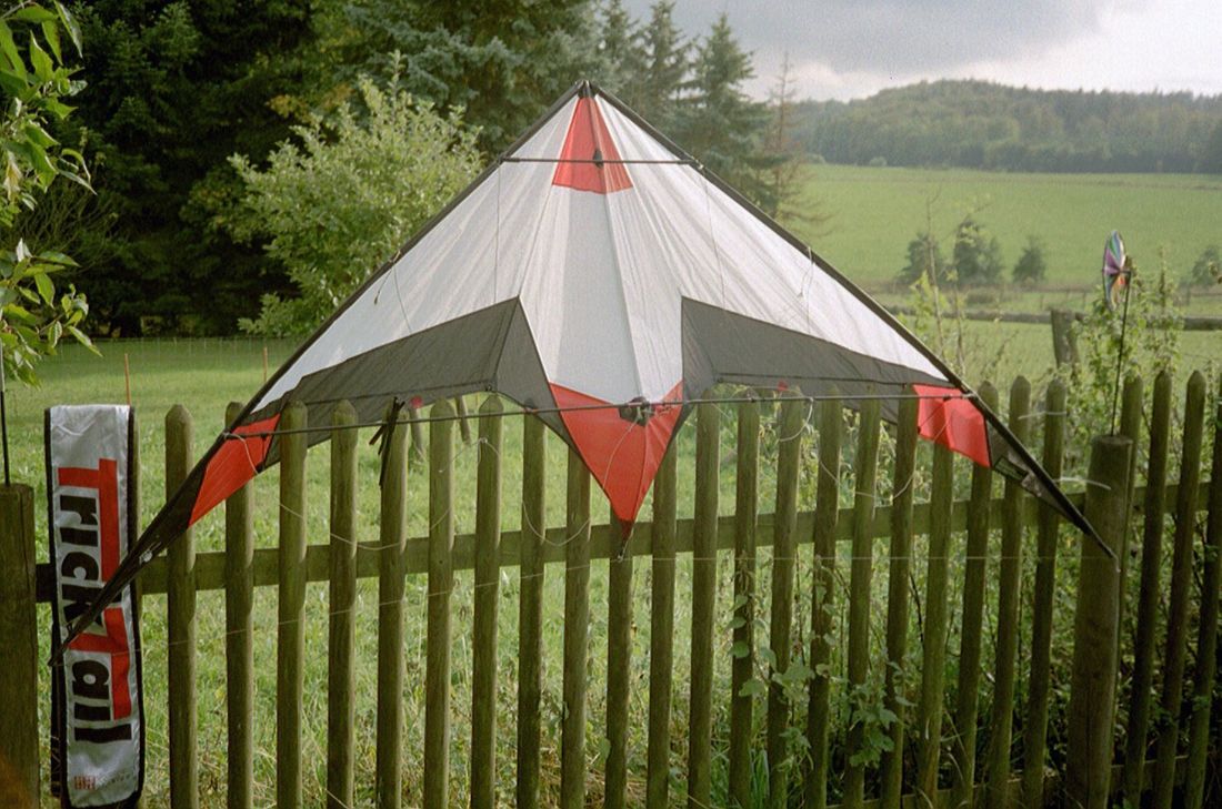 Den iFlite bin ich an ca. 5m loser Leine geflogen. Im Anschluß einen etwas größeren Eigenbau Müllbeutelgleiter an 6m abgewickelter Leine, Mini Winder steckt in der Hosentasche.