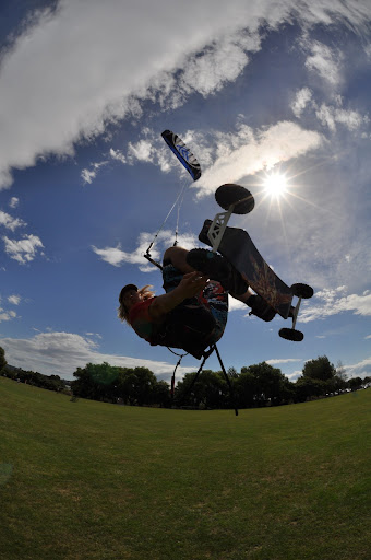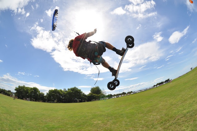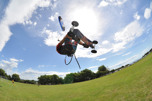 This combined with Maurice's landboarding display of tricks on his own "historic" Speed 3 and those of our local riders Brad Canton, Chris Hedwig and Reuben with his Deluxe 15m Speed 3 kept the profile of Flysurfer high over the entire event.