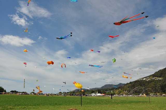 Nun bin ich zufaellig in Nelson auf das jaehrliche Drachenfest gestossen, wo erstaunlicherweise viele Flysurfer unterwegs waren.