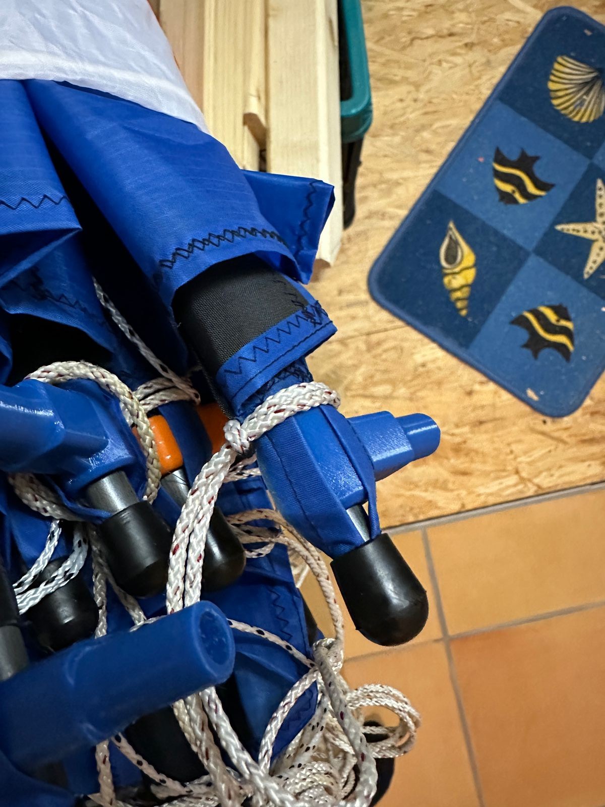 Dann, auch auf diesem Bild: Die Segelstangen sind offensichtlich in einem "Kanal" aus Mylar und Segeltuch geführt. Richtig? Und reichen 6mm für die Segelstange?