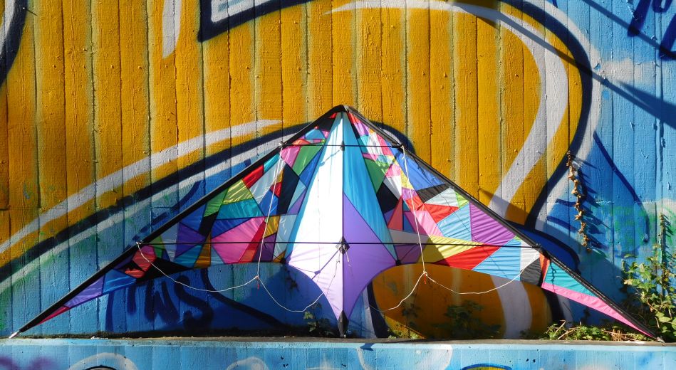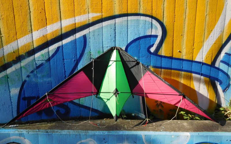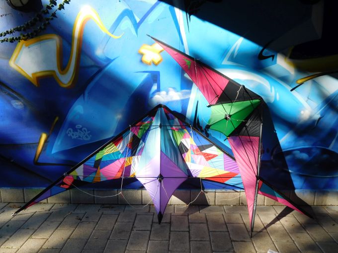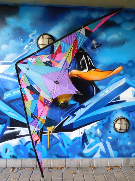 ...und weil die Drachen so bunt sind...müssen sie natürlich vor einer bunten Graffittiwand abgelichtet werden...ganz stilvoll...