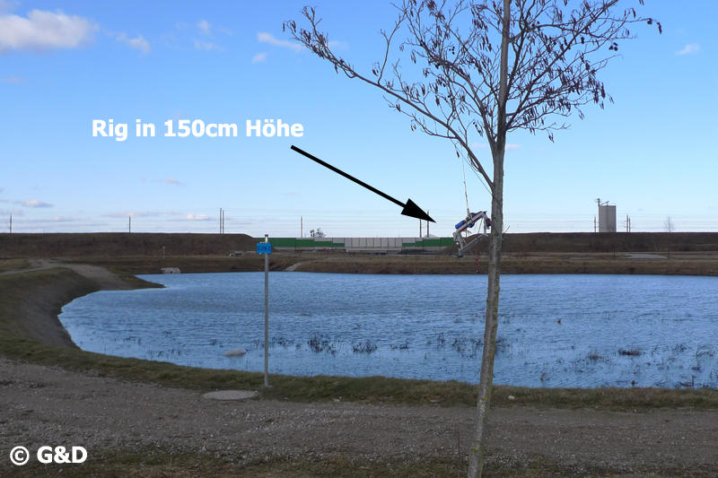 Fazit: Wenn das Rig in 1,5 Metern Höhe hängt, ich am Boden neben dem Auto stehe ergibt sich folgendes: