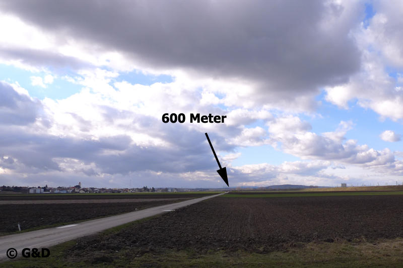 dann gleich weiter zu 600 Metern, länger war die Straße nicht, Bild auch dort noch erkennbar, jedoch rauschte es schon ziemlich.
