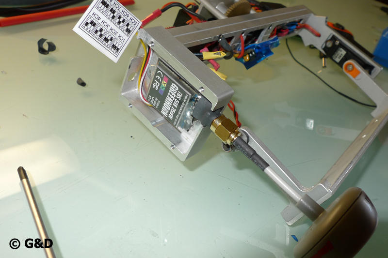 Weiter geht es dann mit der Montage von Monitor,Empfänger und Akkupack auf die Fernsteuerung, da warte ich aber noch auf eine Halterung von Graupner welche hoffentlich bald ankommt.