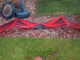 Durch die Hilfe eines Forums-Mitglied haben wir dann einen zusätzlichen Fangschenkel an den äusseren Vertikalen angebracht. Das Ergebnis war zufriedenstellend kein flattern oder Einklappen des Segels mehr.