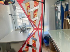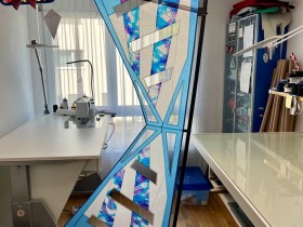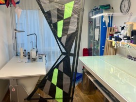 Das ist von Hand bemaltes Icarex von Michel Gressier ein ganz bekannter Drachen Bauer aus Frankreich. Das färbt nicht ab, und das bricht auch nicht in den Farben. ist was ganz spezielles.