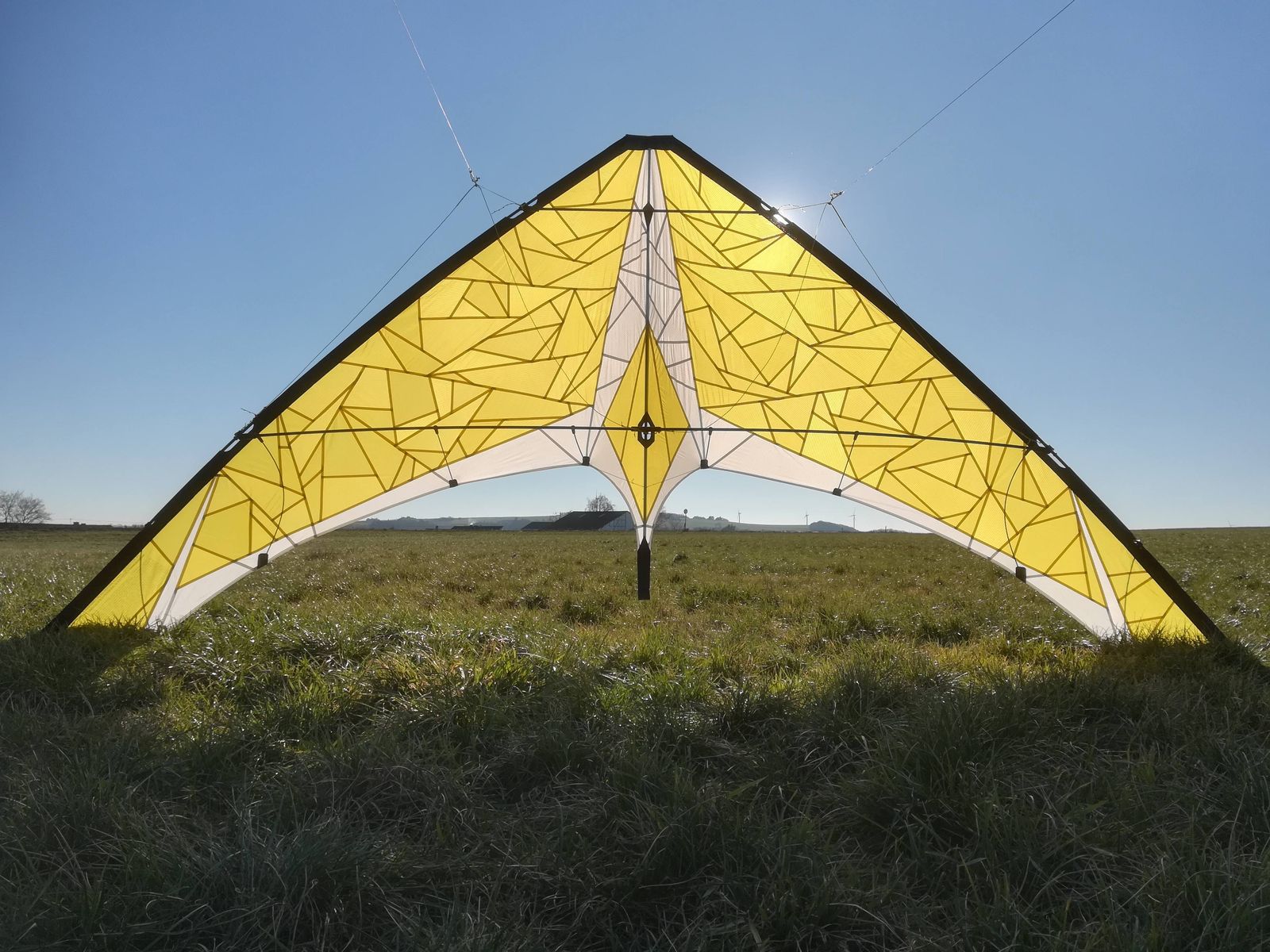 Zur Leinenstärke - der Skydart wird bei mehr Wind deutlich zugkräftig, daher ist eine Verwendung von Leinen unter der Stabilität des Seriensets nicht anzuraten. Lieber ein paar gute Dyneemaleinen mit etwas mehr Bruchlast als den 45 daN wählen. Die sollte den gesamten Windbereich abdecken. Dünne 30er-Leinen an einem "GFK-Bomber" fände ich persönlich jetzt am falschen Ende "aufgerüstet".