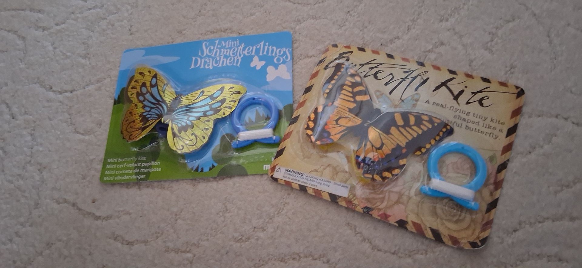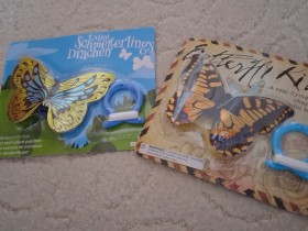 Ich habe auch ein paar von diesen glitzernden Schmetterlingen, die sind kaum größer, als die echten, die so auf den Wiesen hier in Deutschland rum flattern. -
