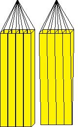das rechte Modell währe keilförmig (nach unten dünner werdend) und hätte Dreieckige Seitenteile und Trennwände: oben quer 10 cm, die beiden anderen Kanten je 1,20 (oder 1,60) m lang.